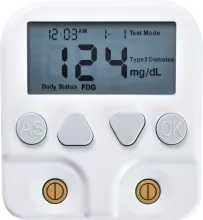 • Main Product:Needle free! No Test Strips! No Finger Pricking! Blood Collcetion Free! ETM-G01E Non-invasive Blood Glucose Meter * Put thumbs and index fingers of the right and left hands on the 4 sensors within 7 seconds reaction time. * A real Inductive, non-invasive solution. * Memory capacity 1000 sets test result. * Power source: 2 * "AAA" batteries. * Size: 96 * 86 * 24 (mm). * Patent No: I 690299 * Designed and made in Taiwan.